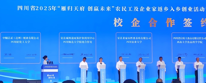 应渠县政府与中顺洁柔(达州)纸业有限公司的邀请,9月29日至30日食品学院副院长叶阳及轻化工程专业教师高洪霞、丁春跃、徐洋一行4人赴渠县参加“雁归天府 创赢未来”农民工及企业家返乡入乡创业活动暨渠县“双招双引”对外开放发展大会,并走访了相关企业。