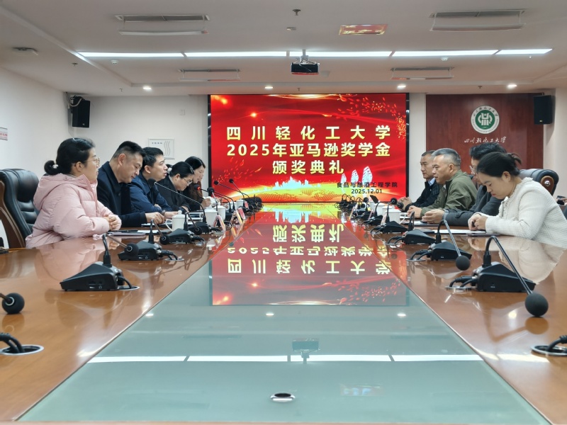 12月1日14:30,食品与酿酒工程学院在宜宾校区综合楼424会议室隆重举行2025年“亚马逊奖学金”颁奖仪式。亚马逊化工有限公司中国区销售总监刘刚、泸州永丰浆纸有限责任公司总经理高焱仁,亚马逊化工有限公司区域经理王兴飞、 客户经理张晓菲,食品与酿酒工程学院党委书记马懿、副院长叶阳、轻化工程系主任李文俊、学工办主任肖凡,轻化工程专业辅导员和获奖代表参加颁奖仪式。肖凡主持颁奖典礼。