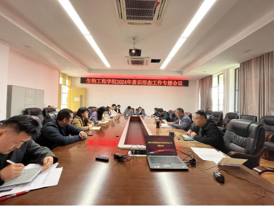 4月8日,生物工程学院在宜宾校区A10-423召开意识形态工作专题会议。学院处科级干部、各系(中心)主任、辅导员及部分民主党派人士参加会议。学院党委书记张利主持会议并作主题发言。